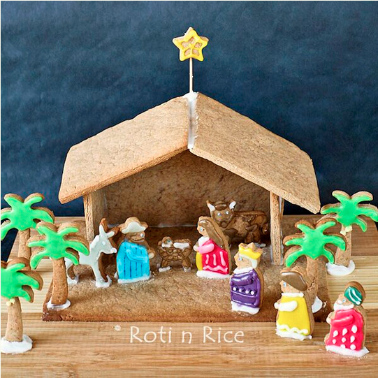 Instead of doing a classic gingerbread house, give it a little more meaning by creating a nativity scene!