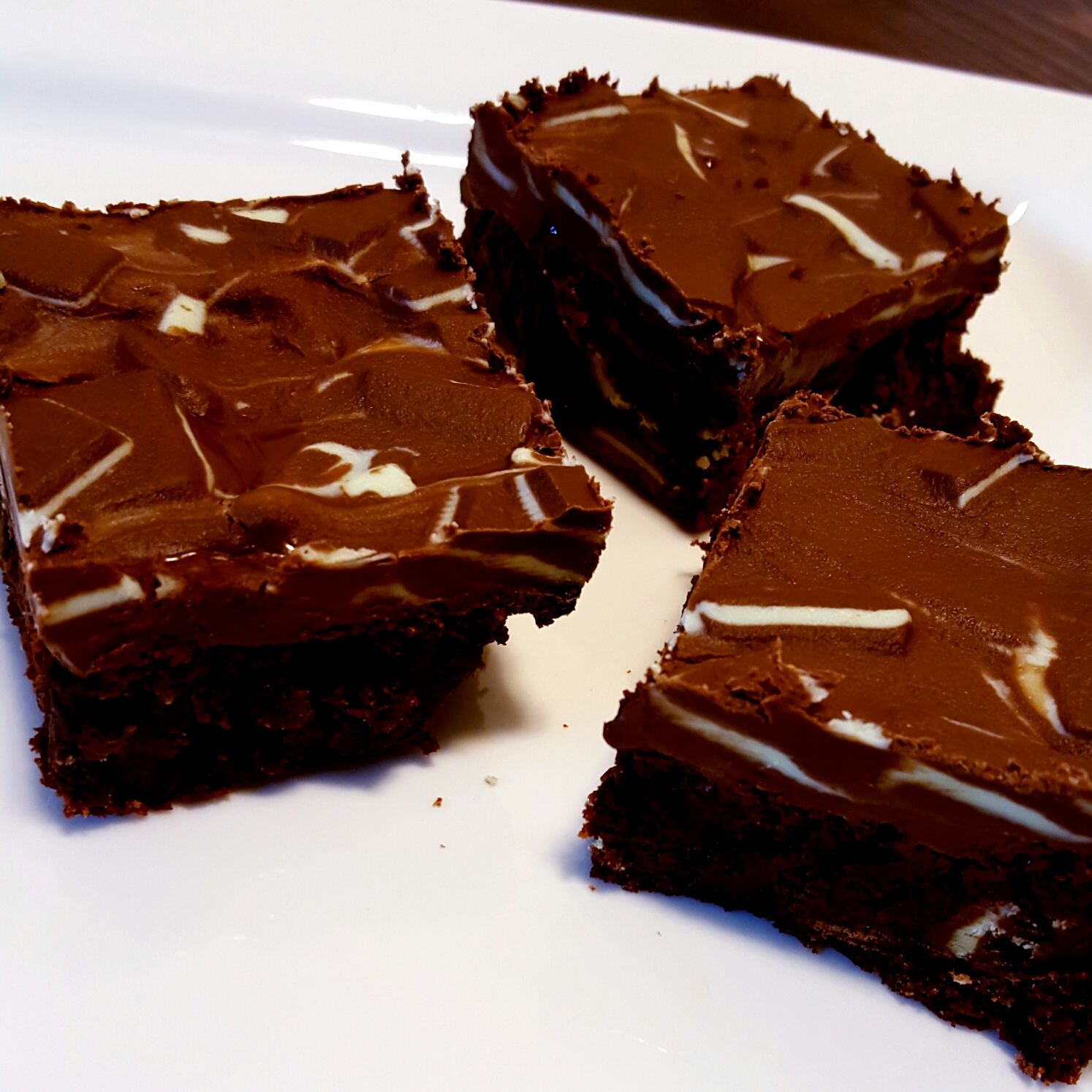 4. Melt the chocolate chips for the topping and spread evenly on top of the brownies. They do not need to be completely cooled.