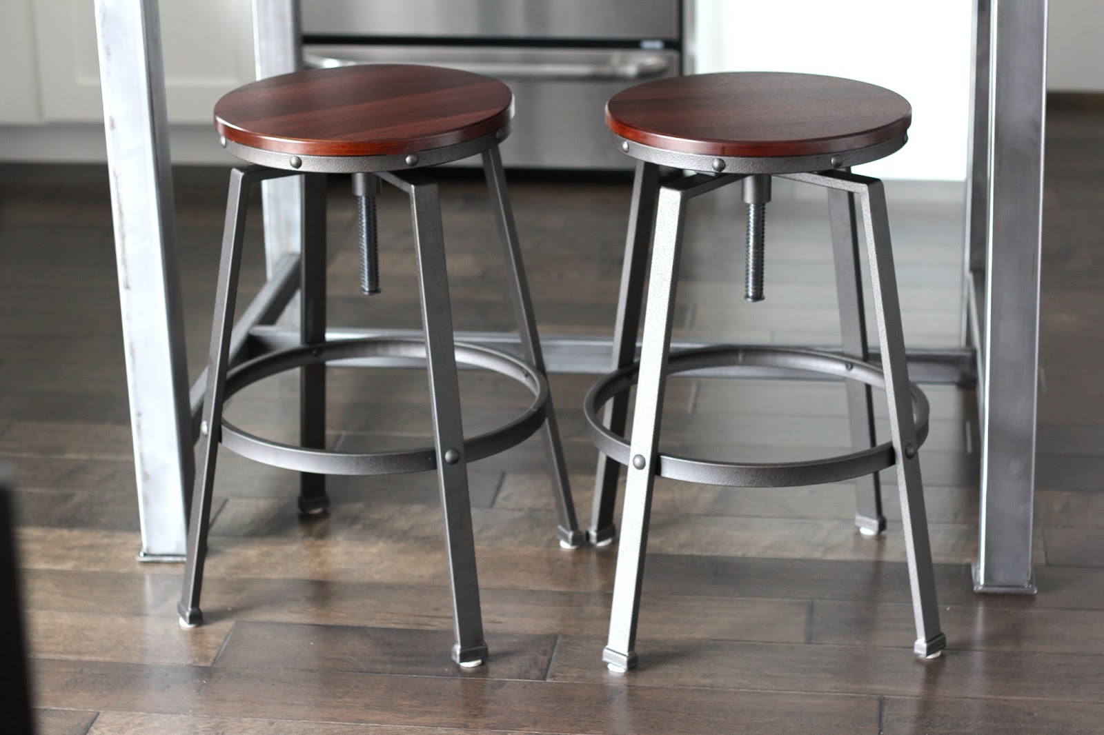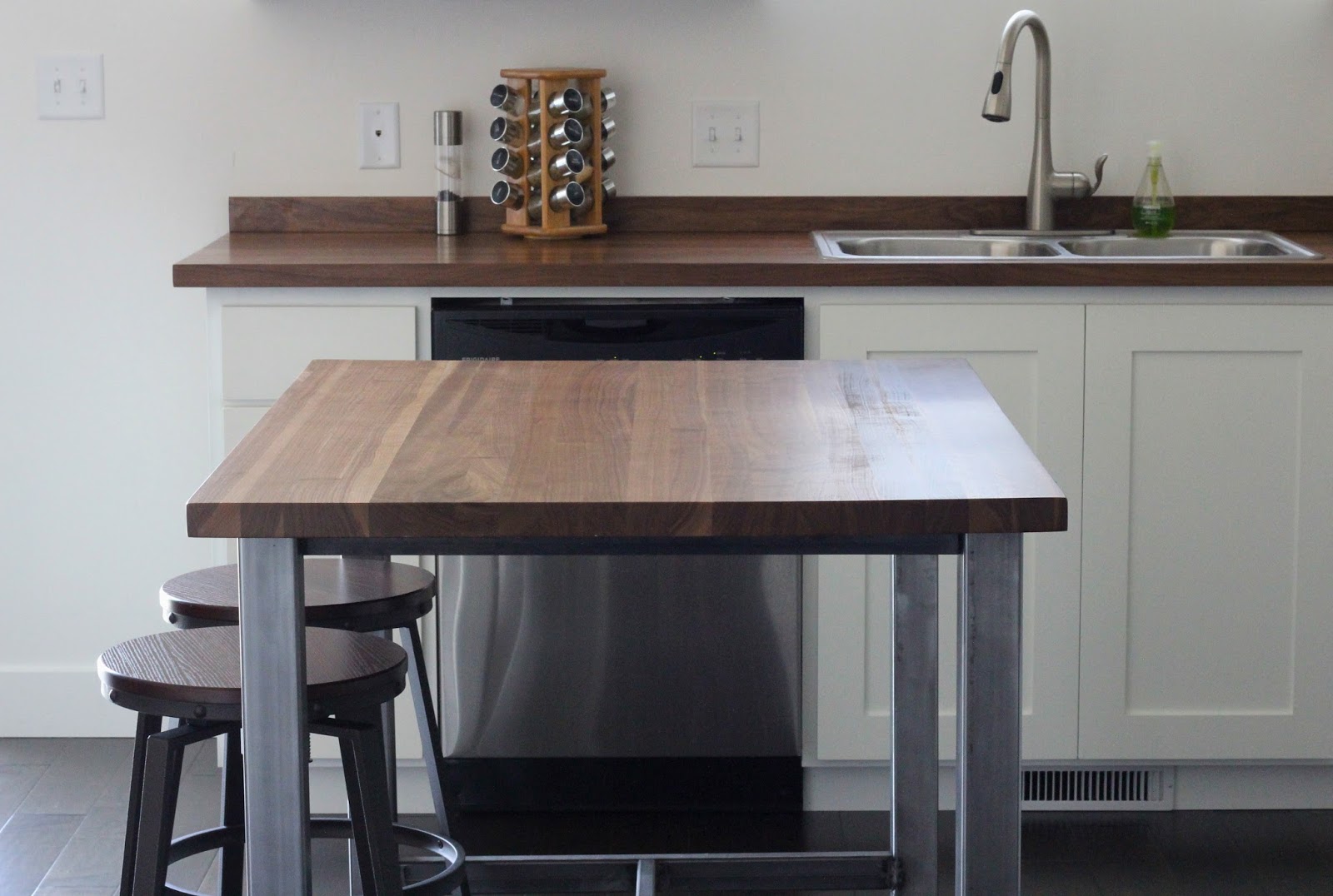 I am leaning towards butcher block counter-tops, and the grain in yours is gorgeous. I love the way it looks with the white and the metal, exactly our style! I love the island too, wish I had room for one, I may be able to work in a setting area at the end of the cupboards, at least I hope to. This is still on a dream list, but now I have a clearer idea of how it will look, thanks so much for sharing!