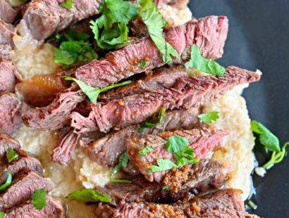 RIBEYE STEAK WITH ROASTED GARLIC AND WHIPPED CAULIFLOWER
