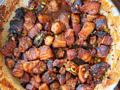 Sticky Honey Soy Pork Belly Bites with Jalapeño Slaw