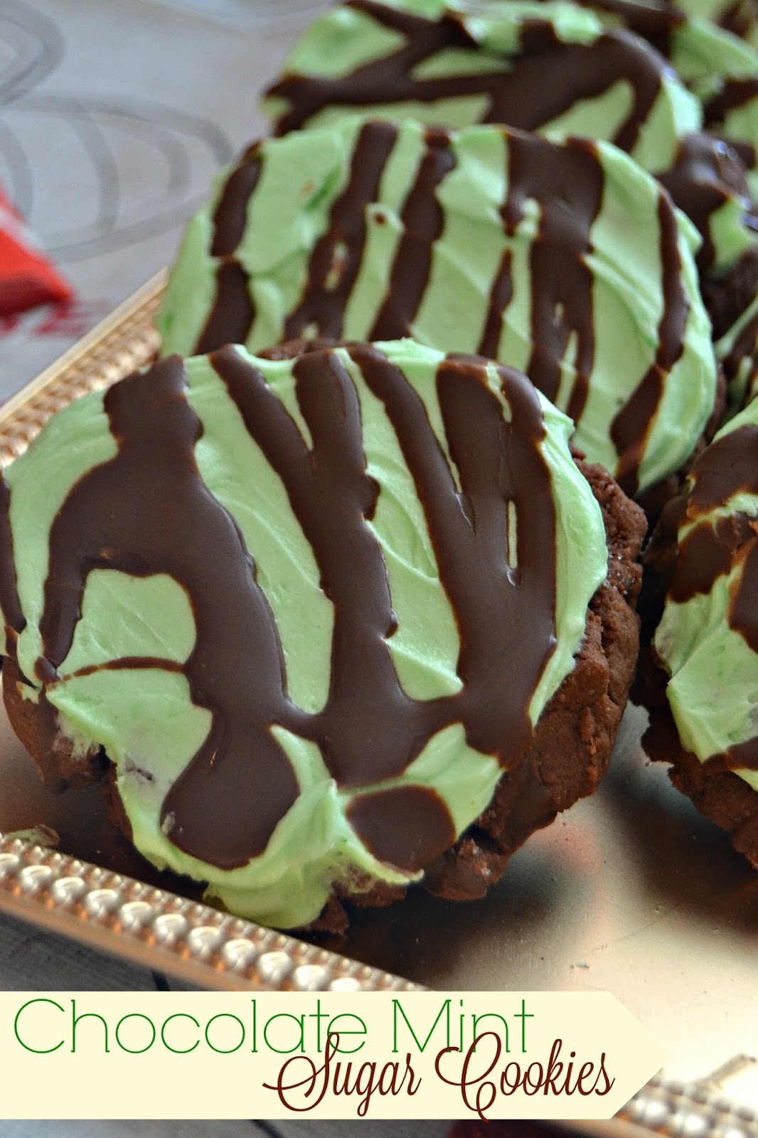 Chocolate Mint Sugar Cookies! They are not super moist cookies, but the frosting makes up for that, and did I mention I love that swirly chocolate drizzle on the top?