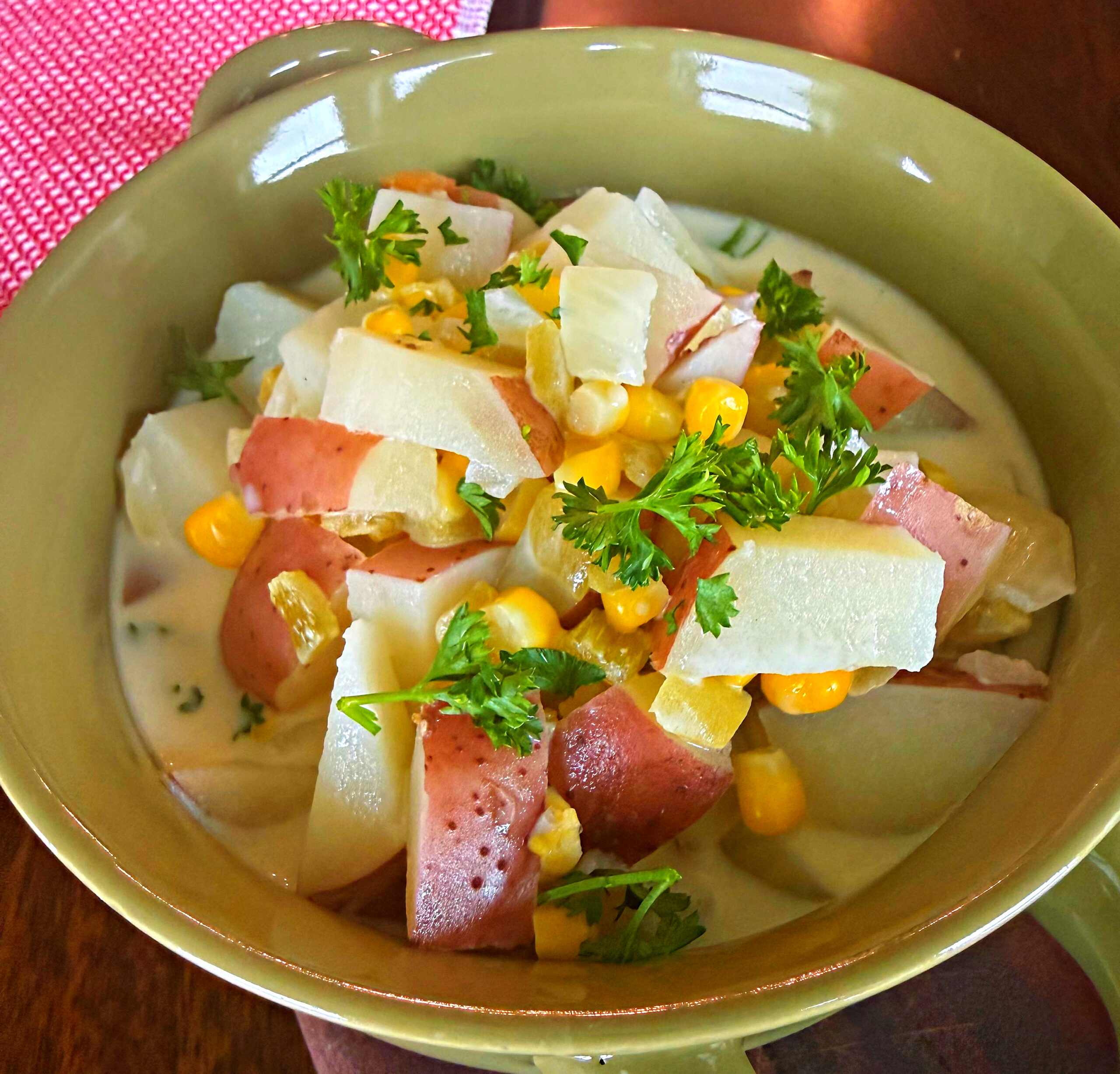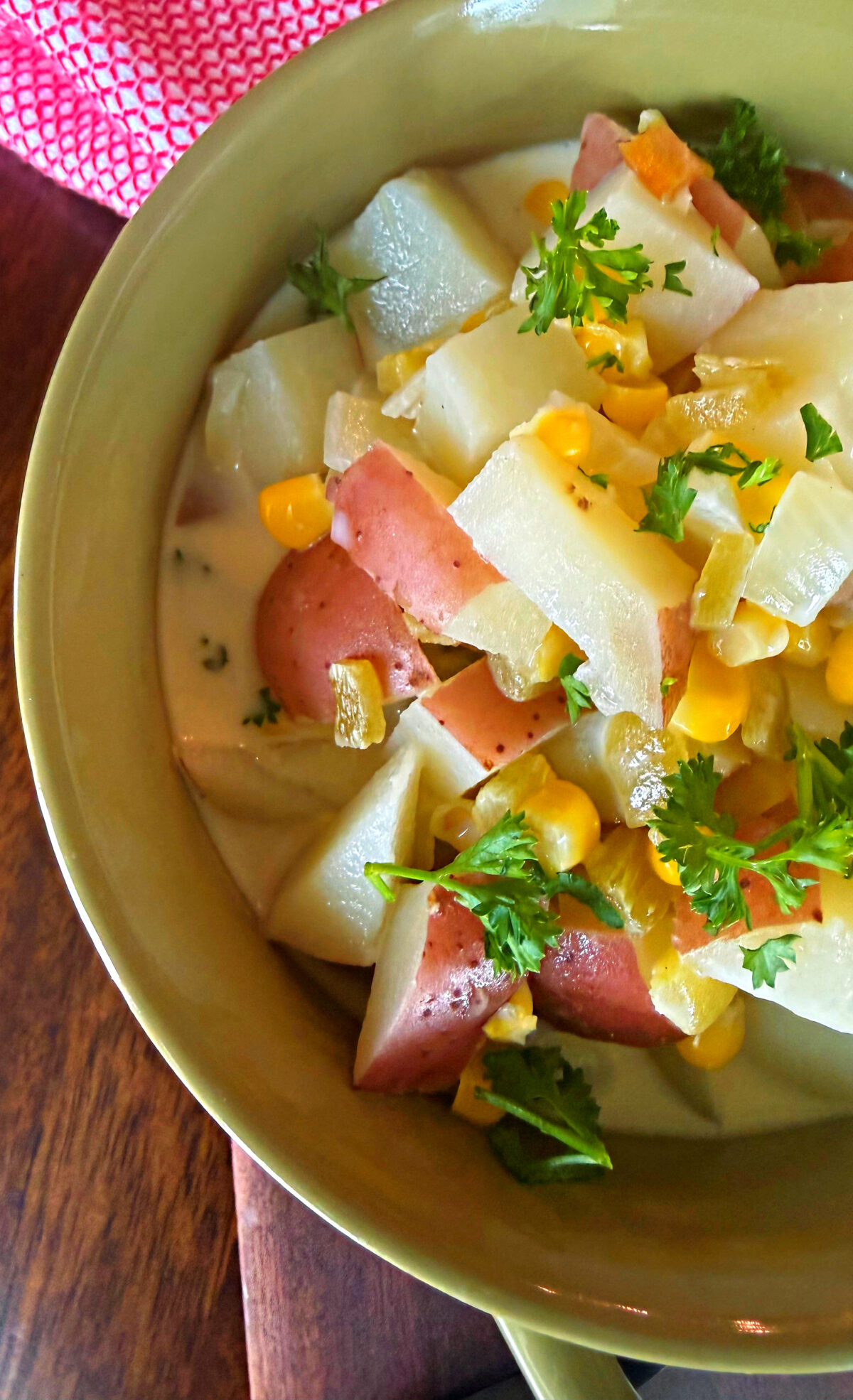 If comfort had a flavor, it would taste like this—creamy, hearty potato corn chowder with a little kick and a whole lot of “just one more bowl” energy.