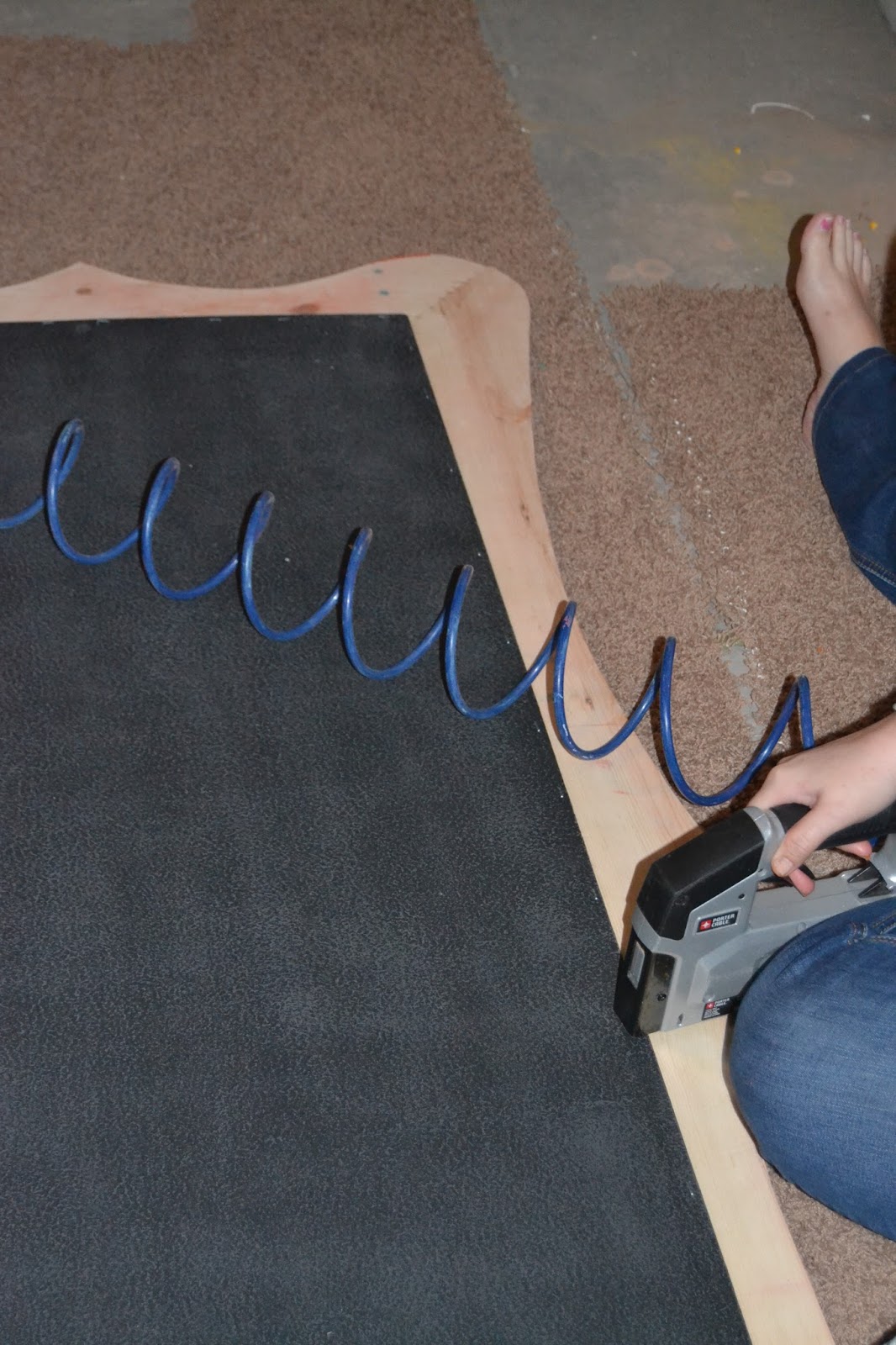 Once you’ve painted the frame, it’s time to staple the chalkboard to the frame. Just staple away! It’s pretty fun!