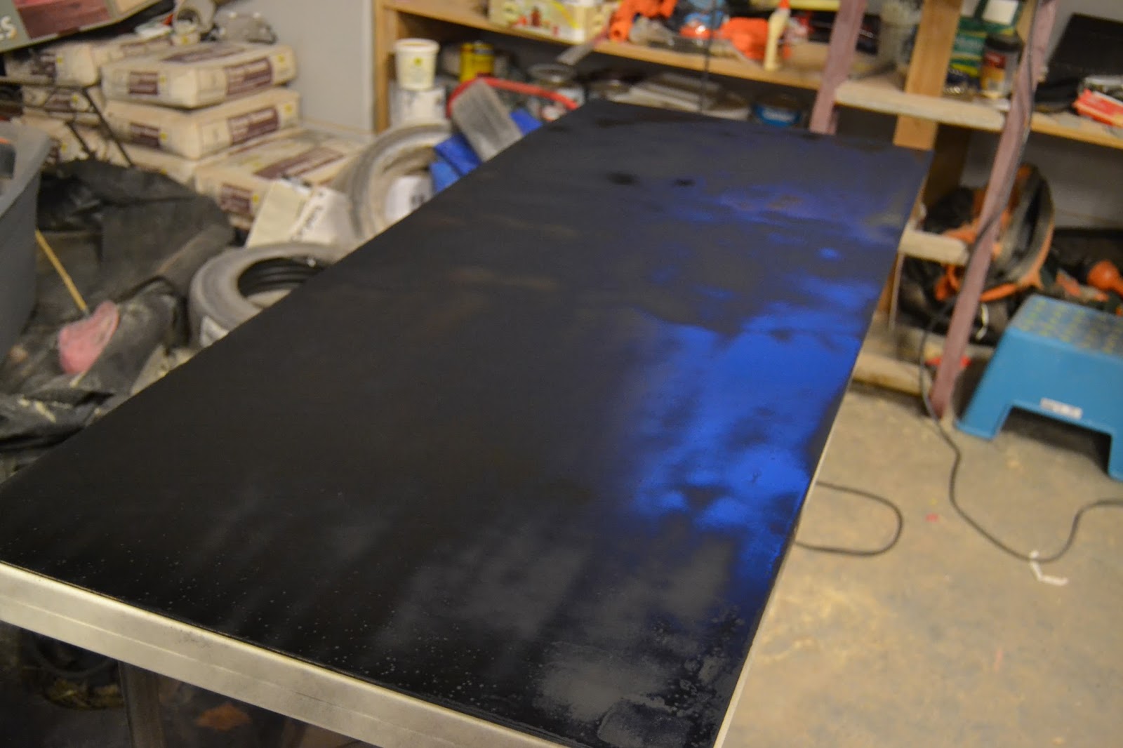 While the chalkboard was drying we filled the angles of the frame with wood filler. We weighted the board down with sandbags to make sure it didn’t try to warp.