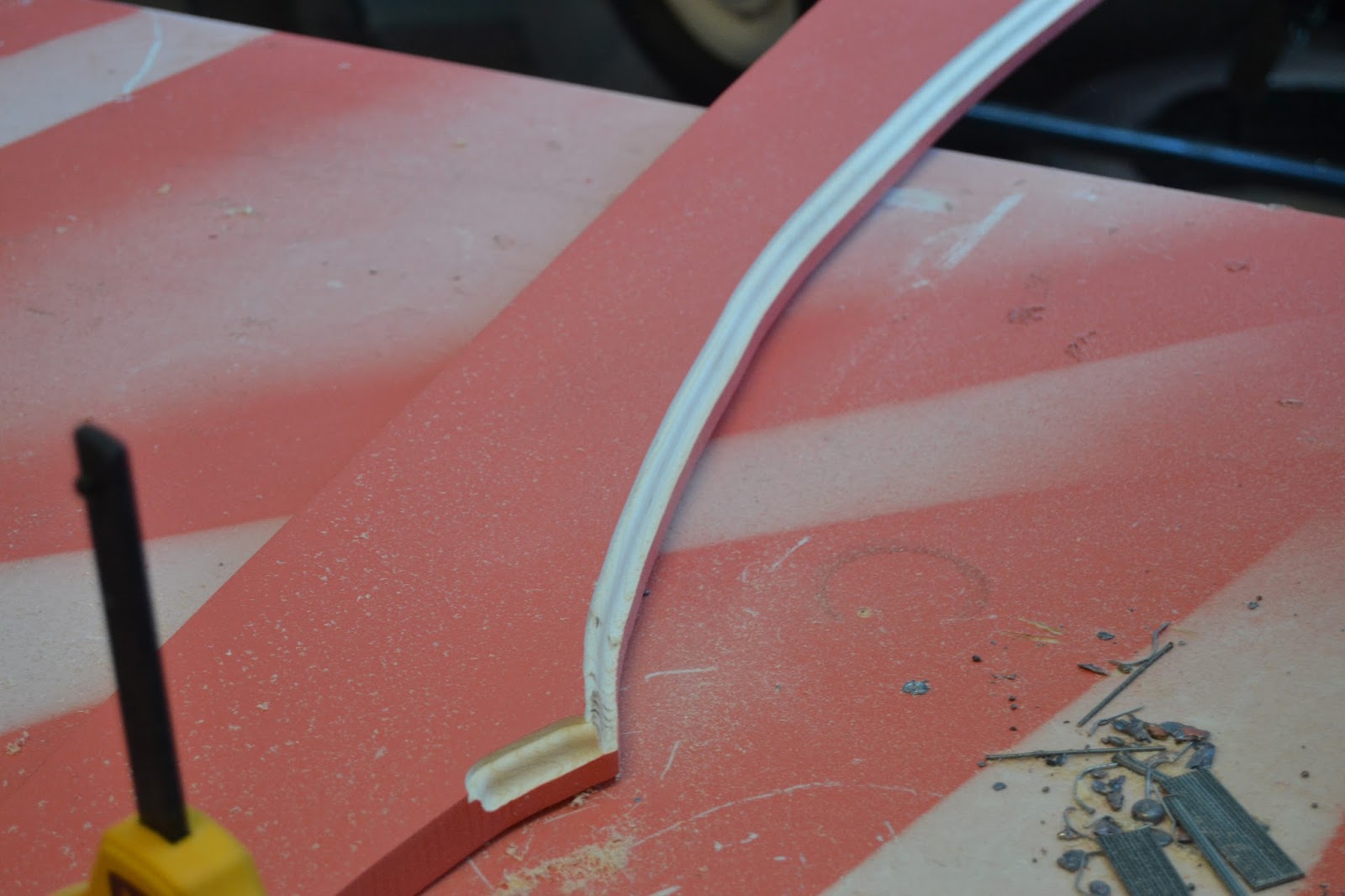 As you can see, I tested the color before we routed it, but you’ll want to wait until you’re done routing it to paint it. Spray paint works best here. We chose Coral spray paint with a Matte finish.