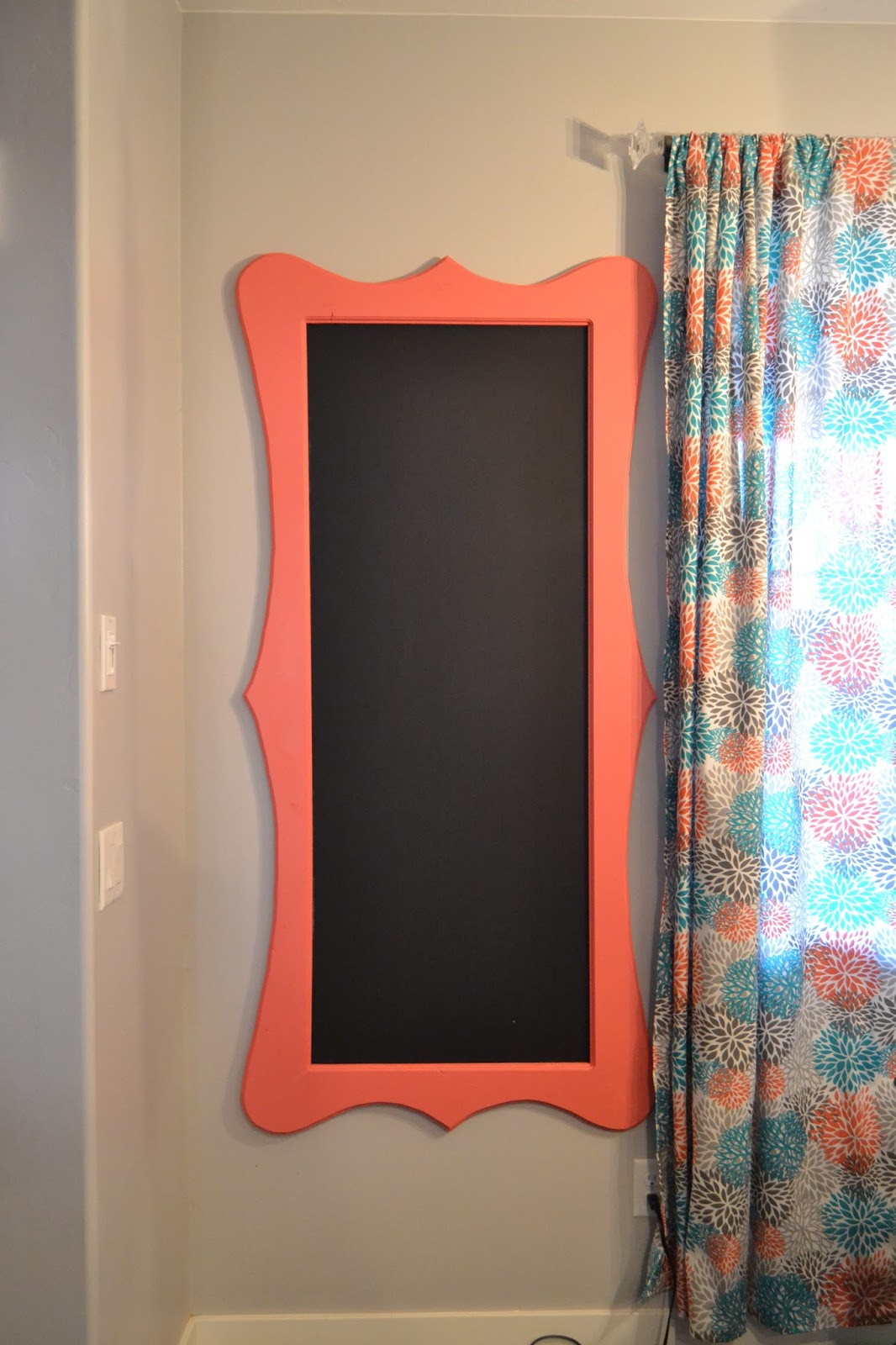 What a fun color! Looks amazing next to the curtains. Love that whimsical shaped frame. 🙂