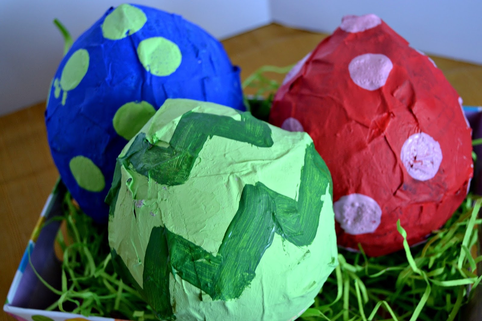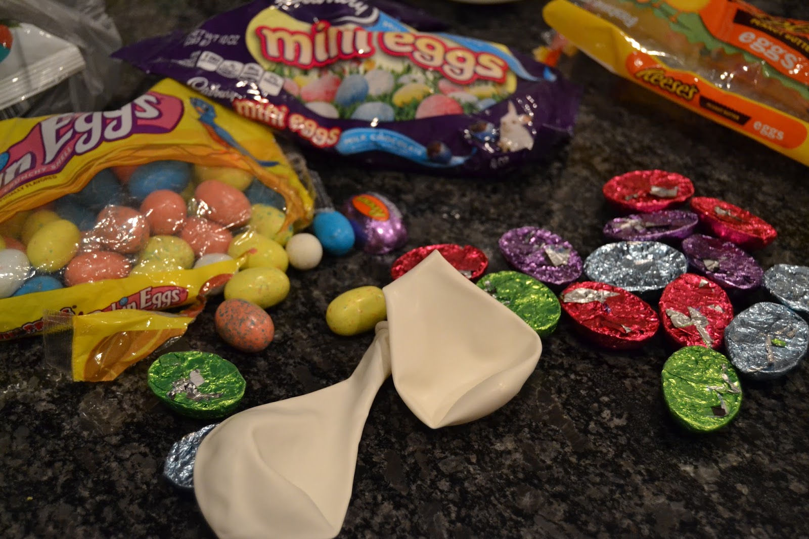 I let my kids paint their eggs however they wanted. When you’re done, just cut open the egg and discard the balloon! You have a hidden treat inside!!