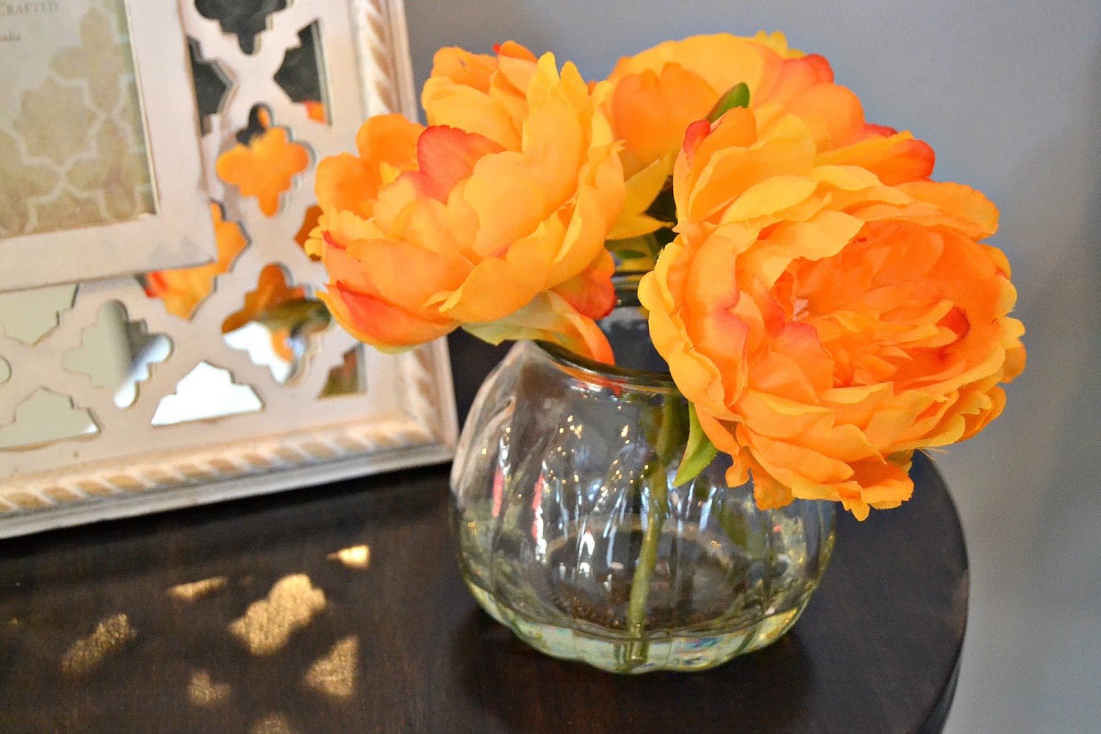 So, after Christmas, I used my Christmas money from my hubby to go to TJ Max. My favorite store here in our small little town. I found these adorable chairs, the table, frame, and flowers there. It was just what I needed to complete the room! I love it and I wanted to share!