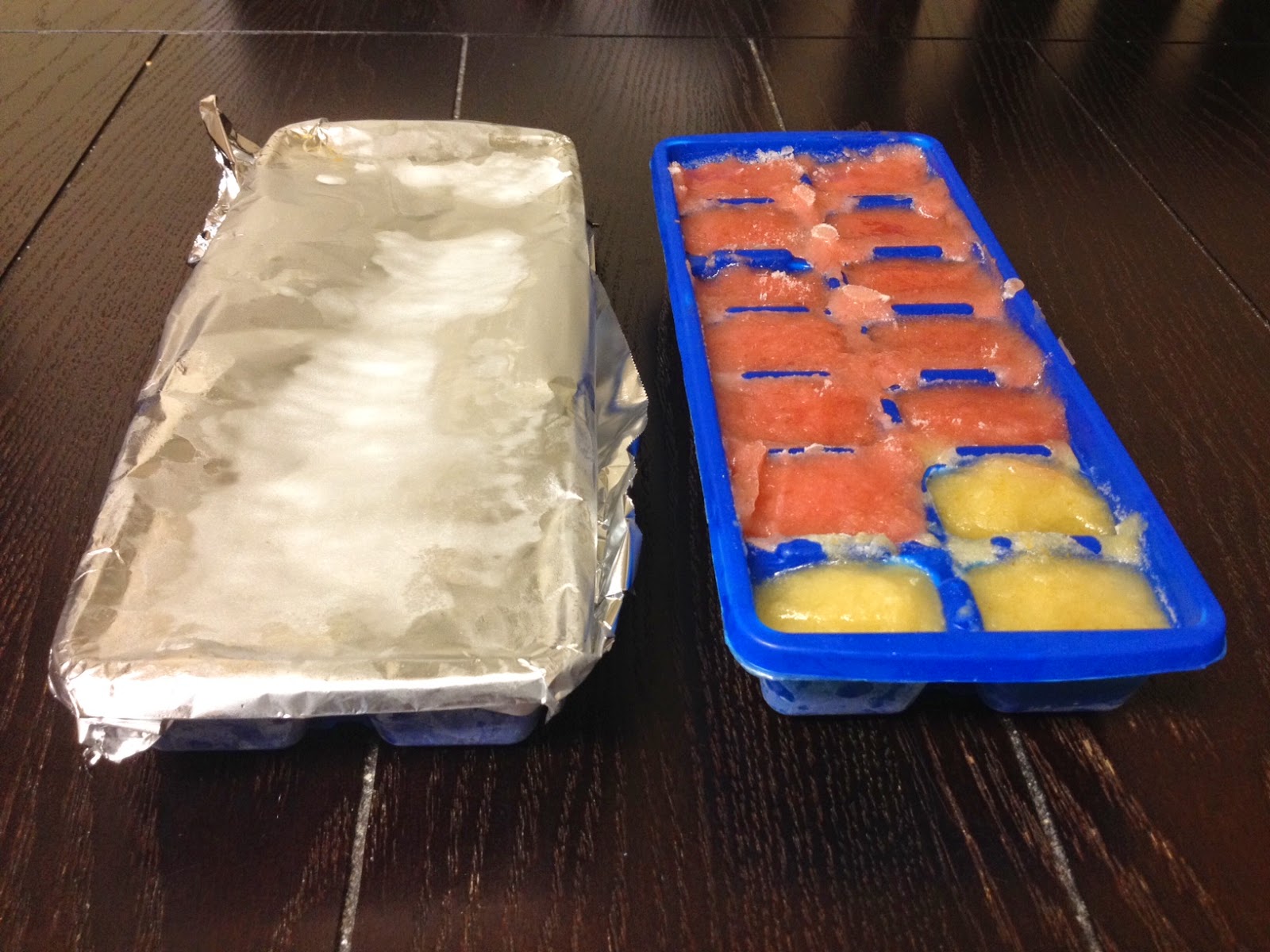 8. Pour into ice cube trays, cover with foil and freeze for 3-4 hours.