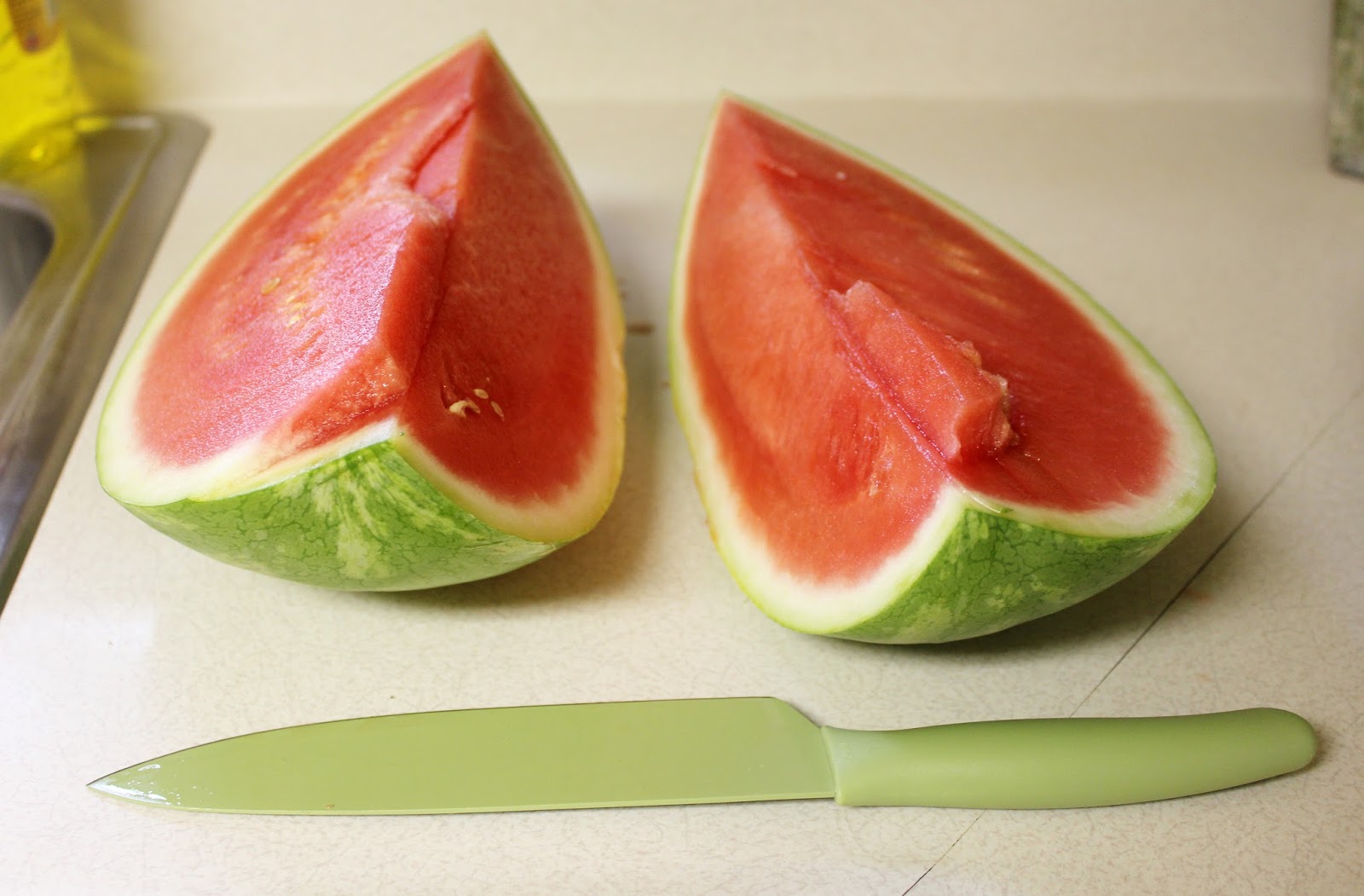 I don’t know about you, but whenever I use to cut up a watermelon I spent most of the time worrying I was going to slice my hand off, and then the rest of the time dreading how I was going to have to clean all the sticky juice off my countertops, floors, cupboards, clothes, hair, shoes, etc. when I was finished.