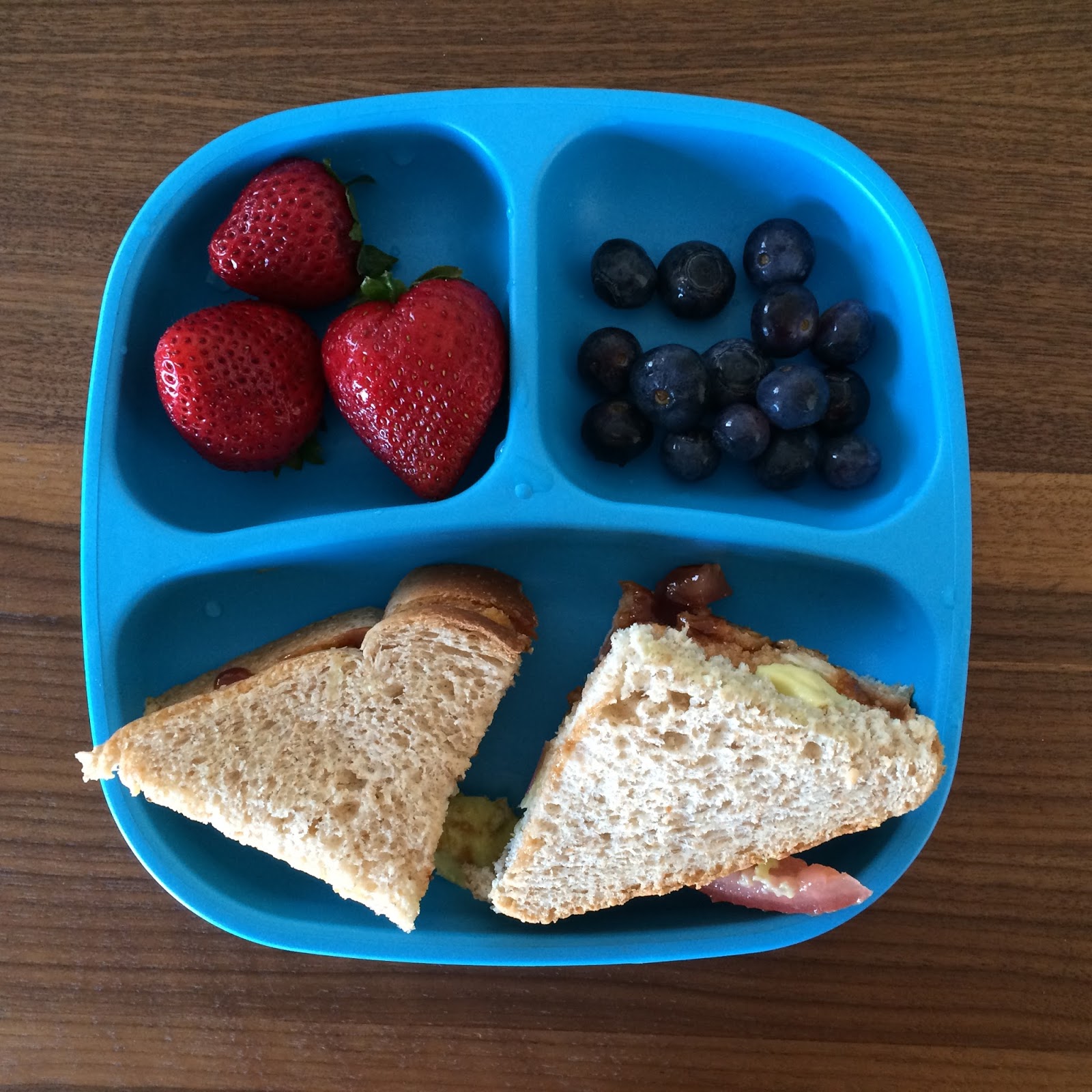 Sandwiches and Fruit: He won’t always eat the sandwich but when he does it’s a happy healthy day!!