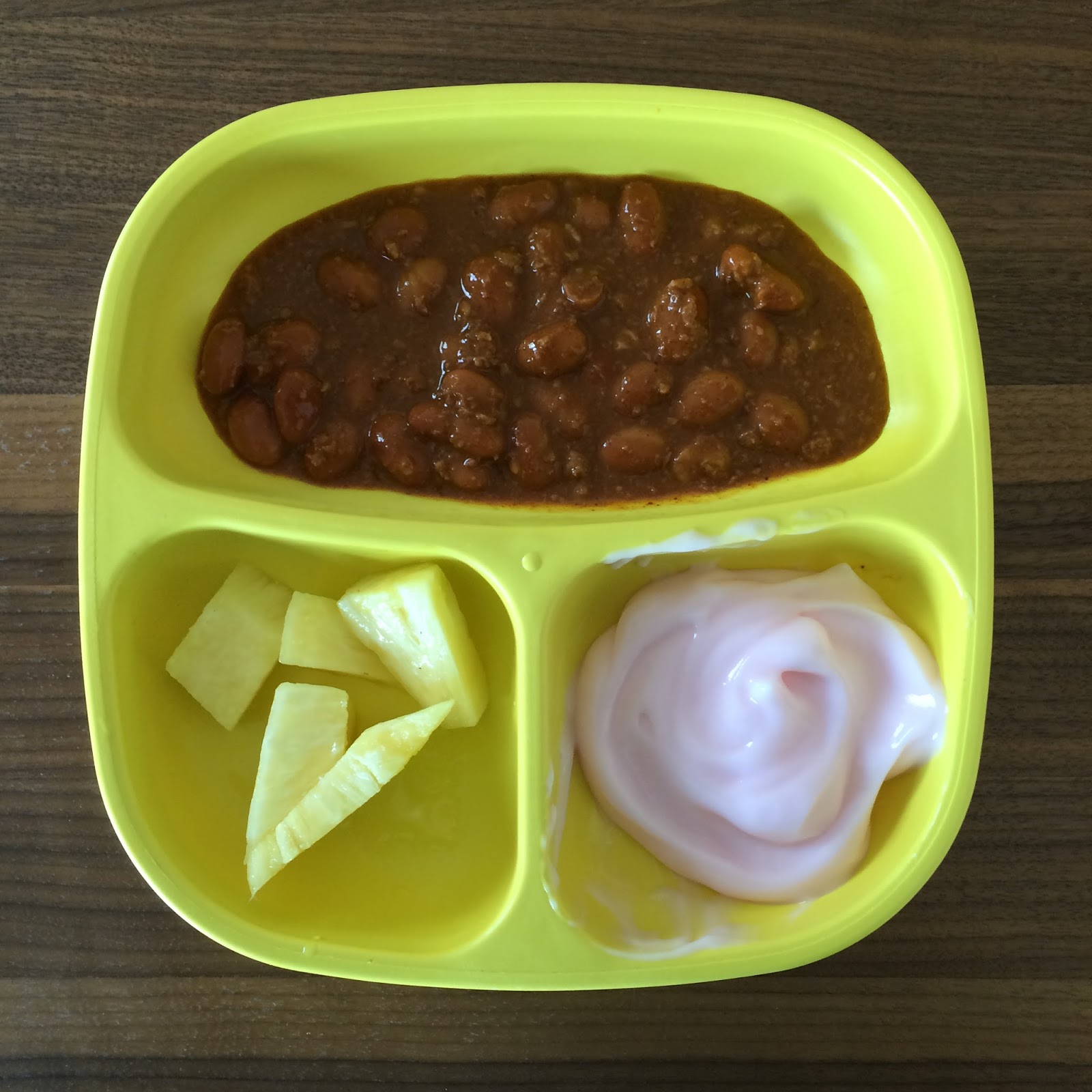 Chili, Fruit, and Yogurt: Yes, this is canned chili, my friends! I warned you, these are realistic, not organic! Sometimes you’ve just had a baby and groceries are the last things on your long list of impossible things to do am I right??