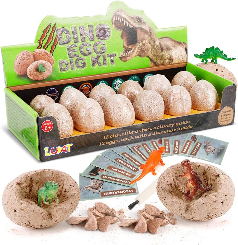 Dinosaur Eggs Dino Dig Kits 12 Unique Dinosaurs Excavation Toy: Excavate a detailed dinosaur model from its plaster dinosaur eggs. Experience the excitement of a paleontologist discovery like a real archaeologist as you excavate 12 unique dinosaurs! $18.99